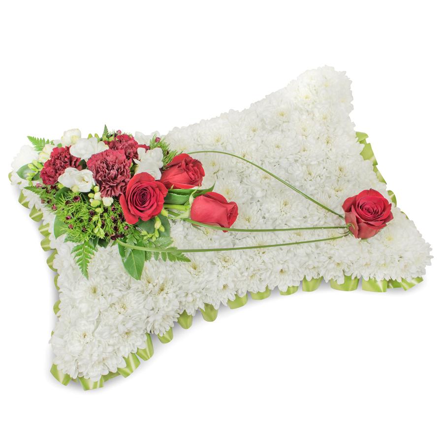 Express heartfelt sympathy with our elegant floral design. This luxurious arrangement features a stunning blend of white chrysanthemums, red roses, white freesias, dark red carnations, dianthus, and bear grass. Each stem is hand-selected for quality and vibrancy, ensuring that your gift stands out as a symbol of enduring beauty and care.